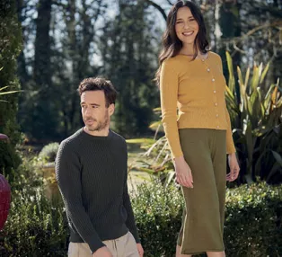 Nos pulls en lin sont tricotés, ce qui les rend infroissables. Le point en relief que nous utilisons pour certains d’entre eux donne un toucher délicat.